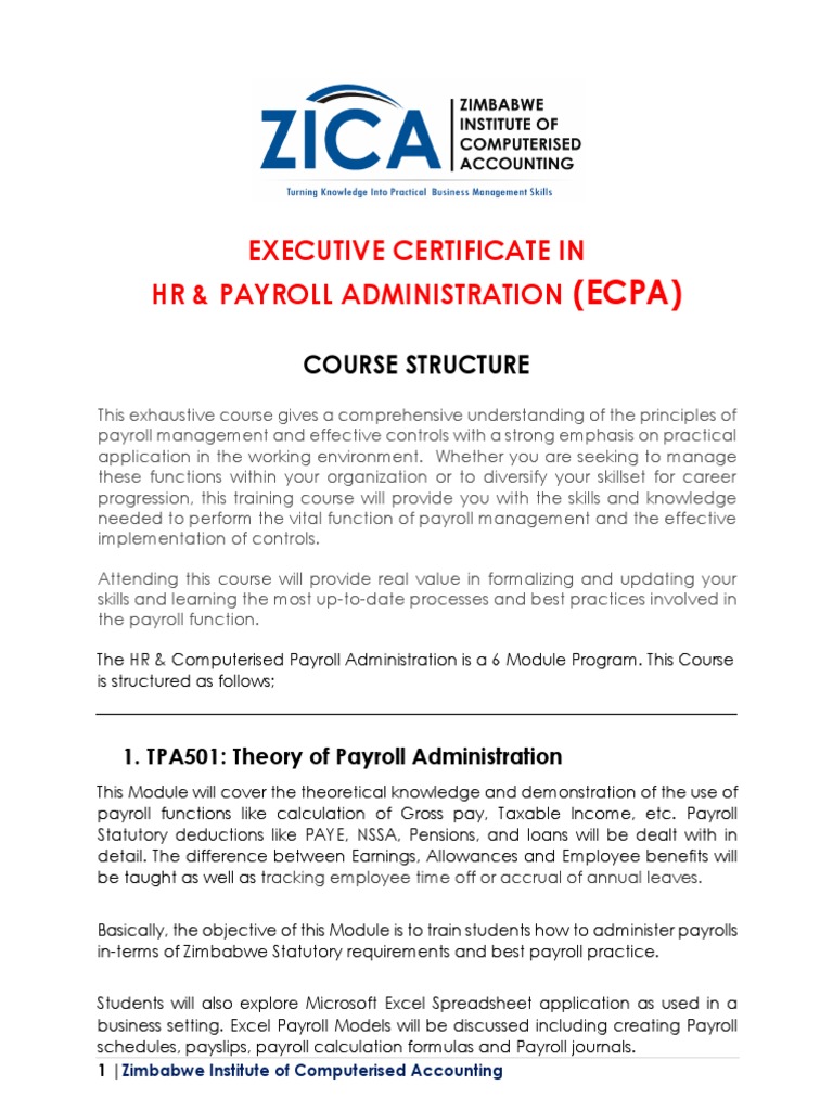 Executive Certificate in Payroll Admin Course Outline | PDF | Payroll ...