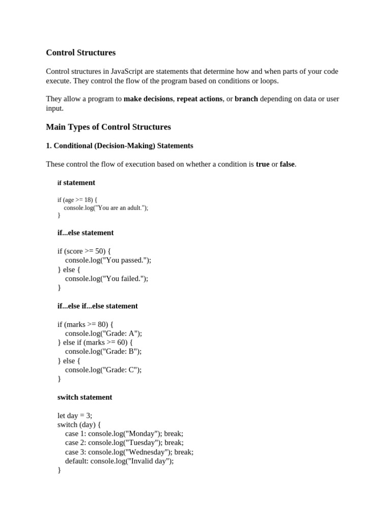 JavaScript Control Structures Explained | PDF | Control Flow | Computer ...