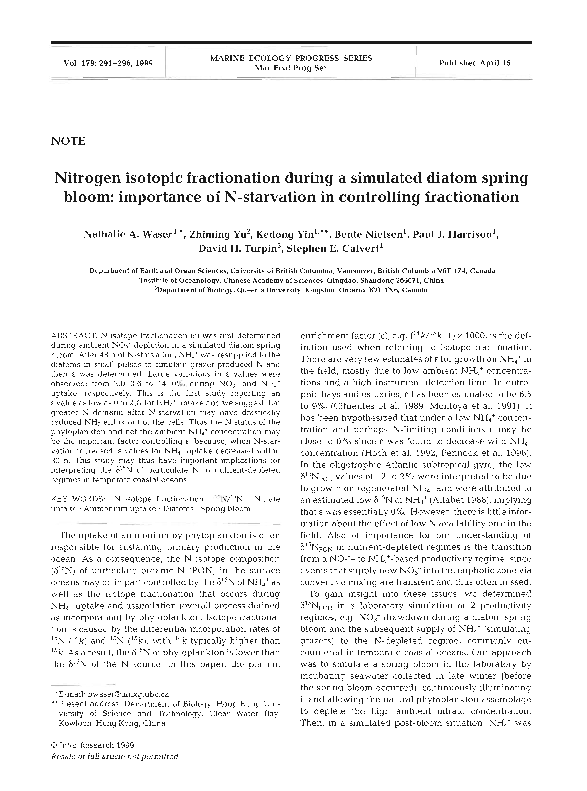(PDF) Nitrogen isotopic fractionation during a simulated diatom spring ...