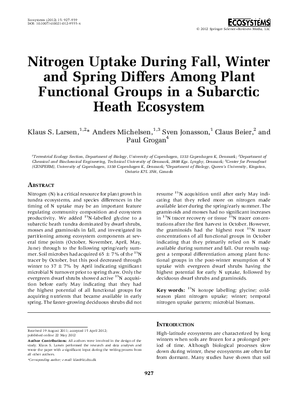 (PDF) Early Spring Nitrogen Uptake by Snow-Covered Plants: A Comparison ...