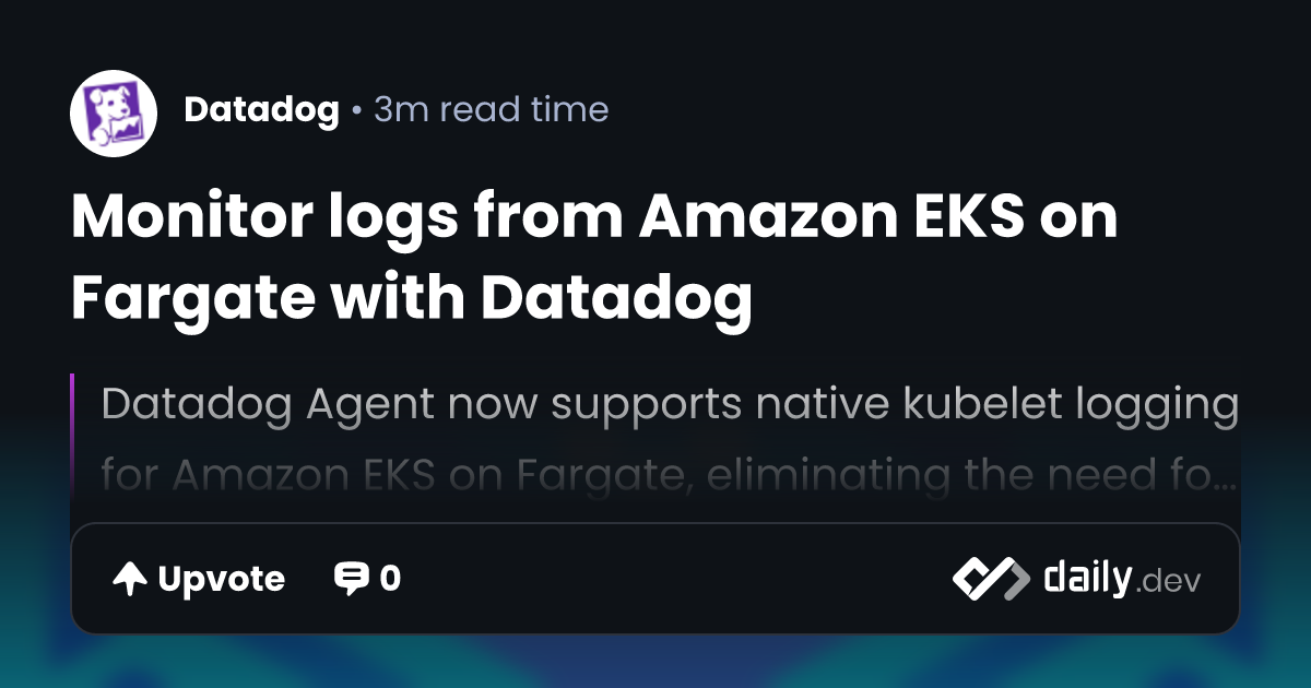 Monitor logs from Amazon EKS on Fargate with Datadog | daily.dev