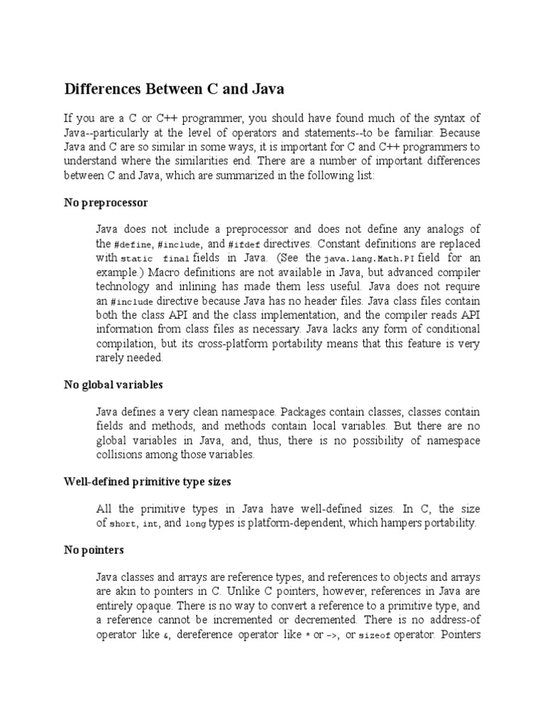Differences Between C and Java | PDF | C (Programming Language) | Java ...
