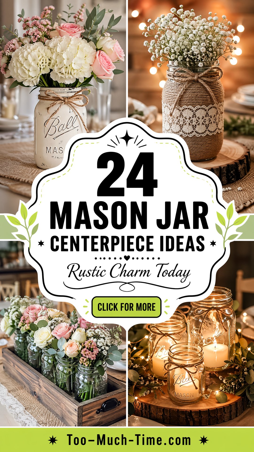 Based on this image's title: “24 Mason Jar Centerpiece Ideas: Rustic Charm Today - Too Much Time”