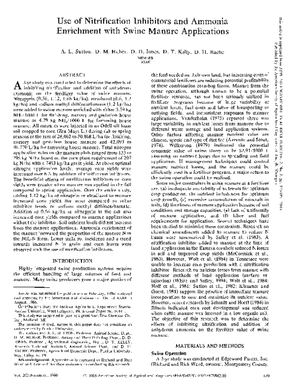 (PDF) Use of Nitrification Inhibitors and Ammonia Enrichment with Swine ...