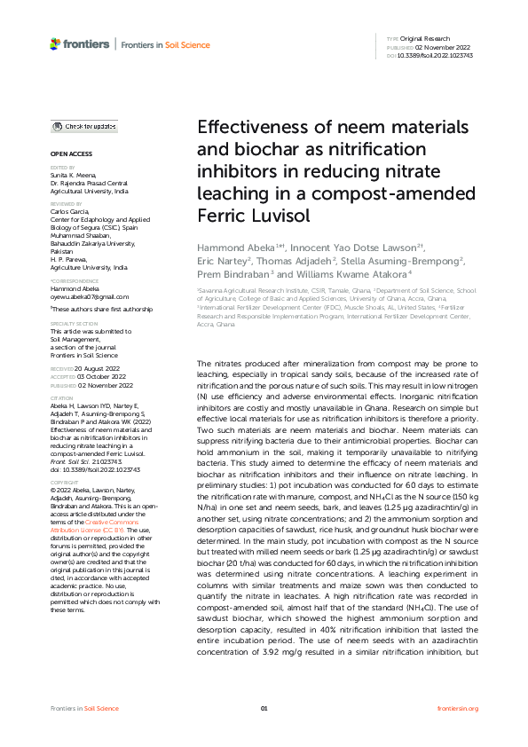 (PDF) Effectiveness of neem materials and biochar as nitrification ...
