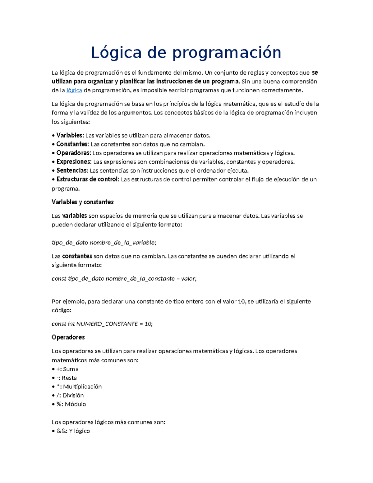 Lógica de programación parte 1 | uDocz