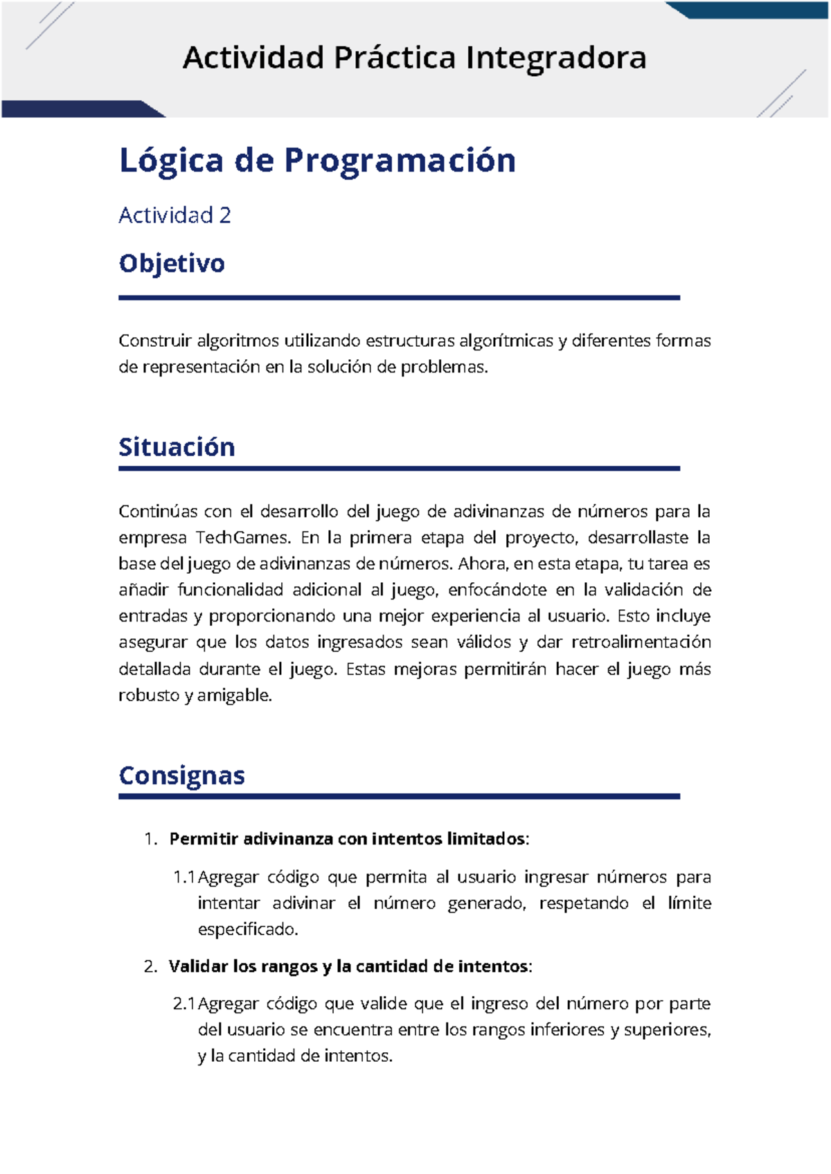 Lógica de Programación - Actividad 2: Mejora del Juego de Adivinanzas ...