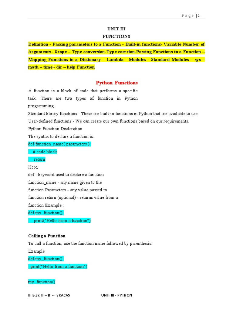 UNIT III - Python | PDF | Parameter (Computer Programming) | Anonymous ...