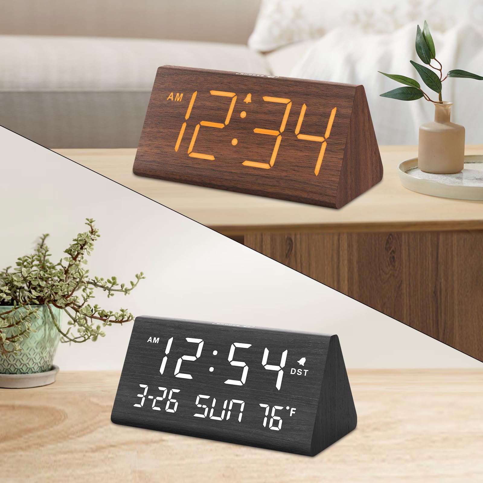 Amazon.com: Plumeet Wooden Digital Alarm Clock for Bedrooms, Wood 4 ...