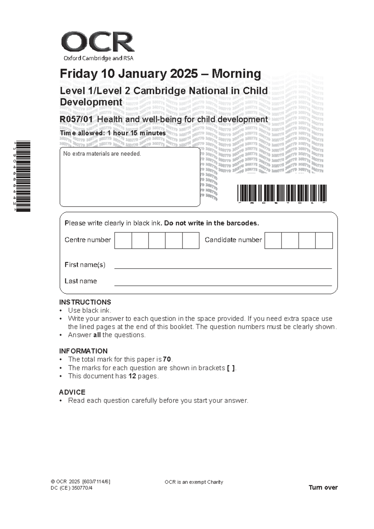 OCR Level 2 Cambridge National Child Development Exam Paper - Jan 2025 ...