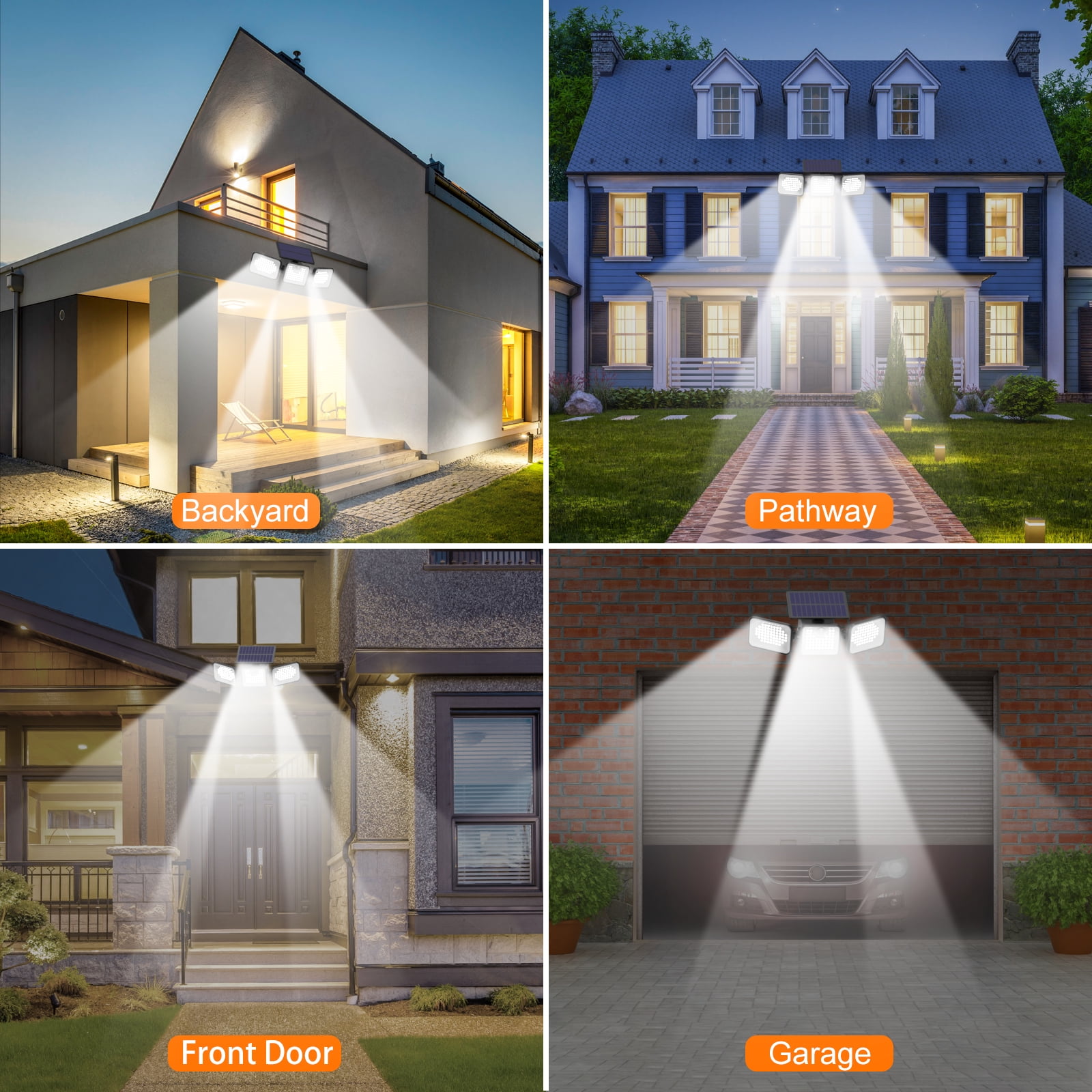 230 LED 2200LM Solar Motion Sensor Light, 3 Adjustable Heads, IP65 ...