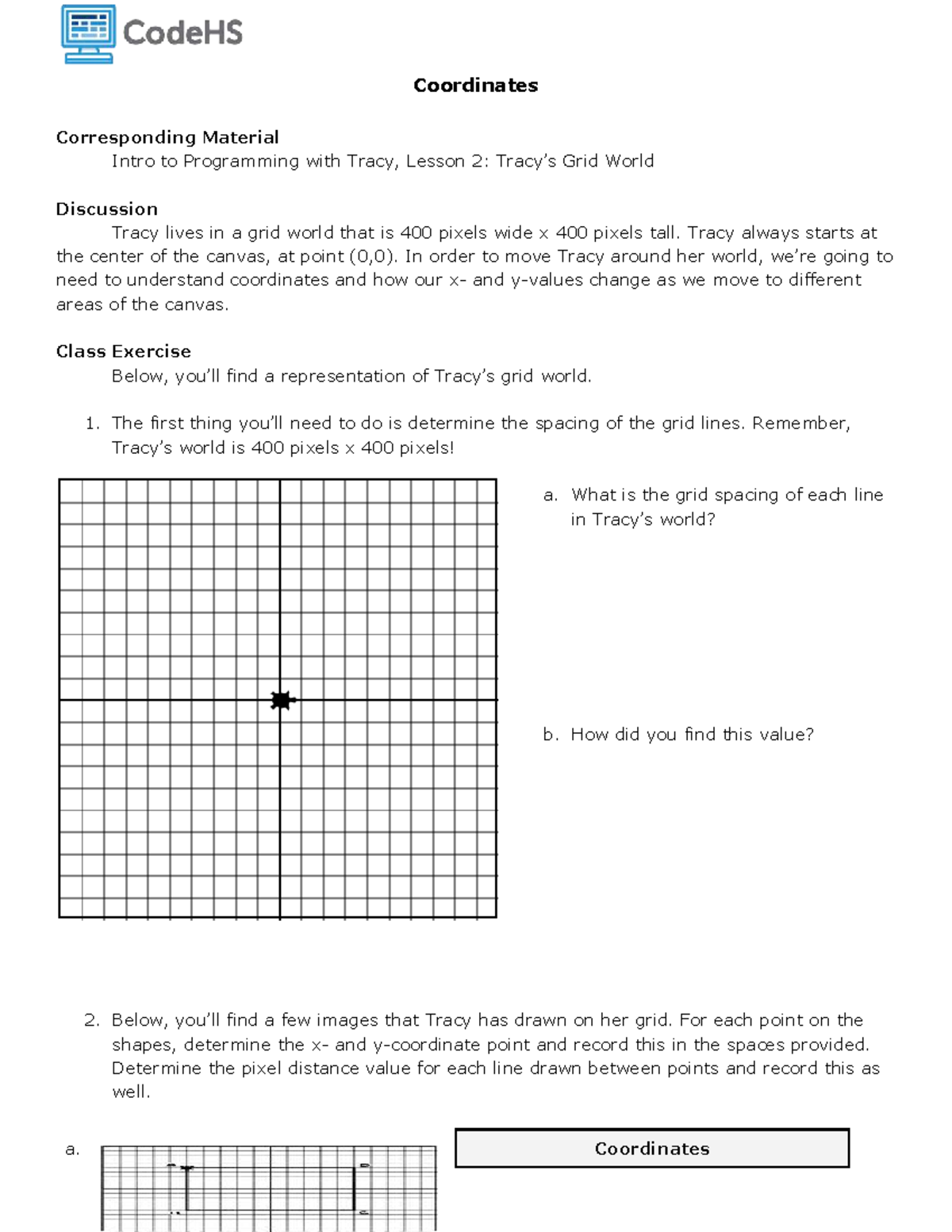 Intro to Programming with Tracy, Lesson 2: Grid World Coordinates - Studocu