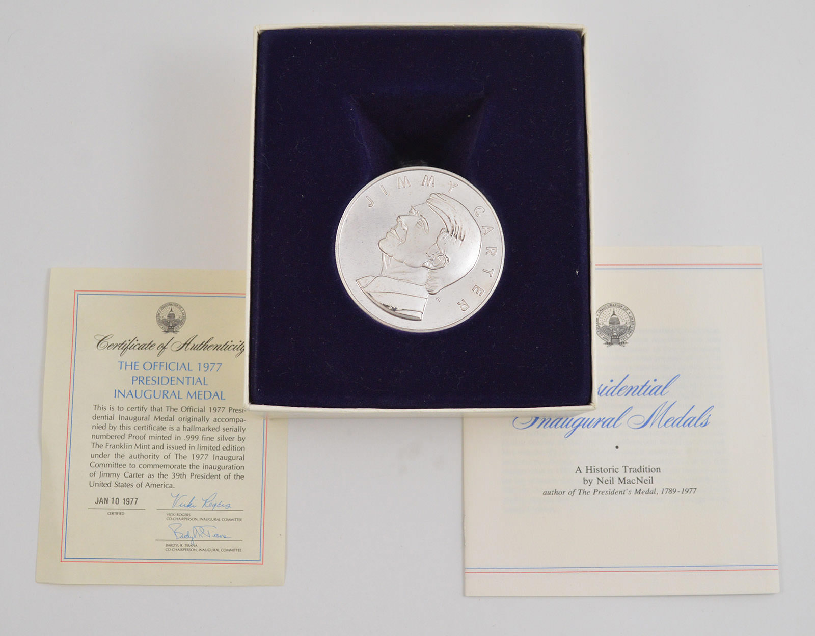 Official 1961 JFK & 1977 Inaugural .999 Fine Silver Medal w/ Box 371 ...