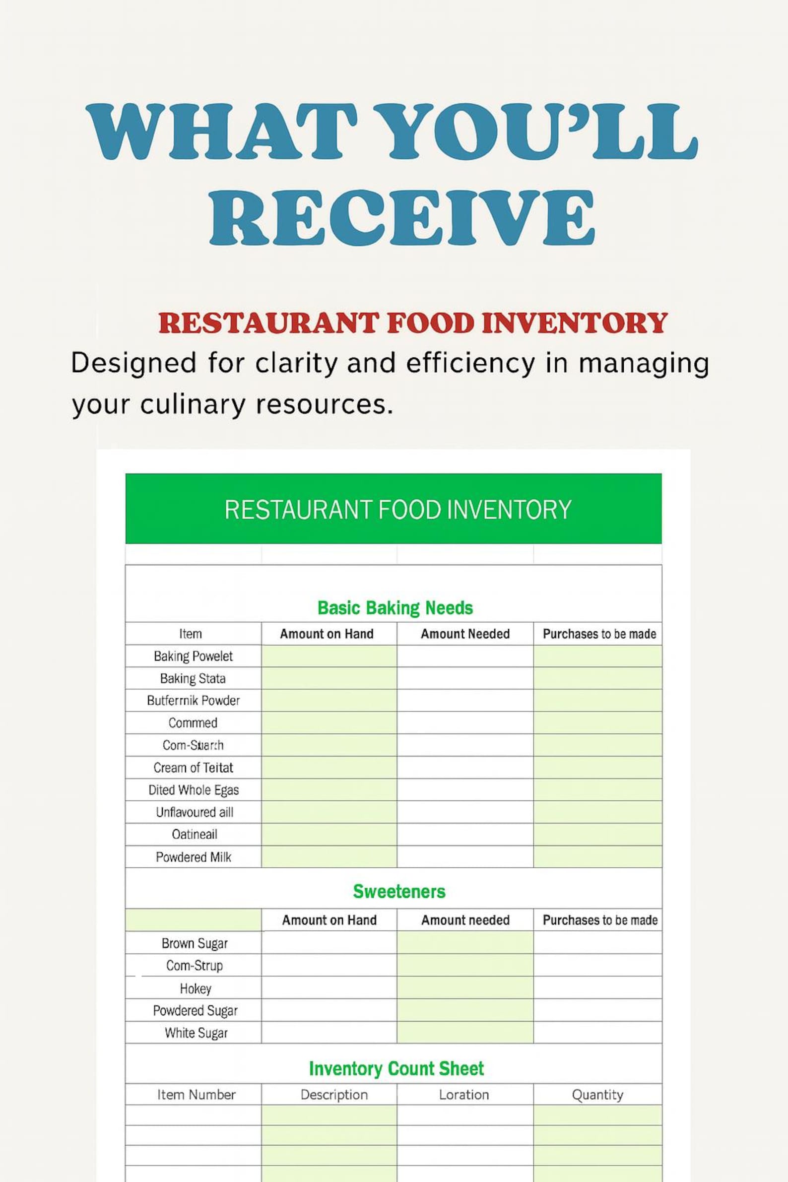 EXCEL Restaurant Inventory Form - Etsy