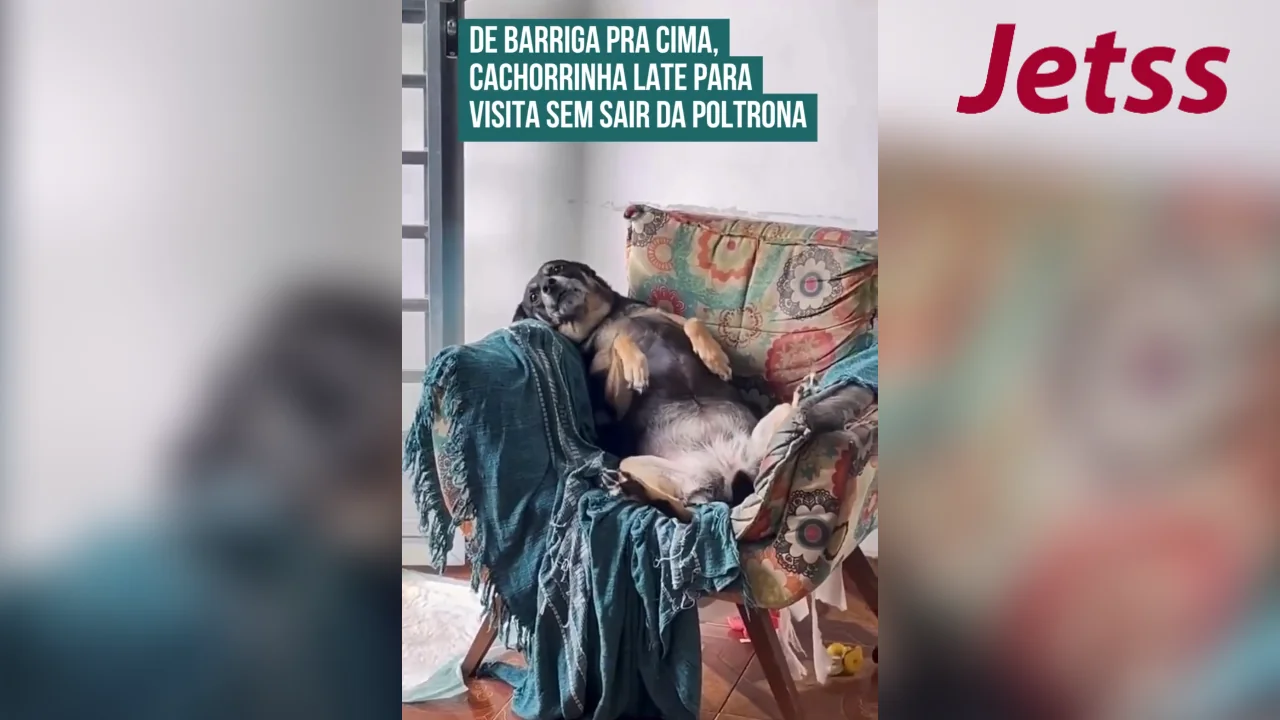 Cachorrinha late para visita sem sair da poltrona e diverte a web