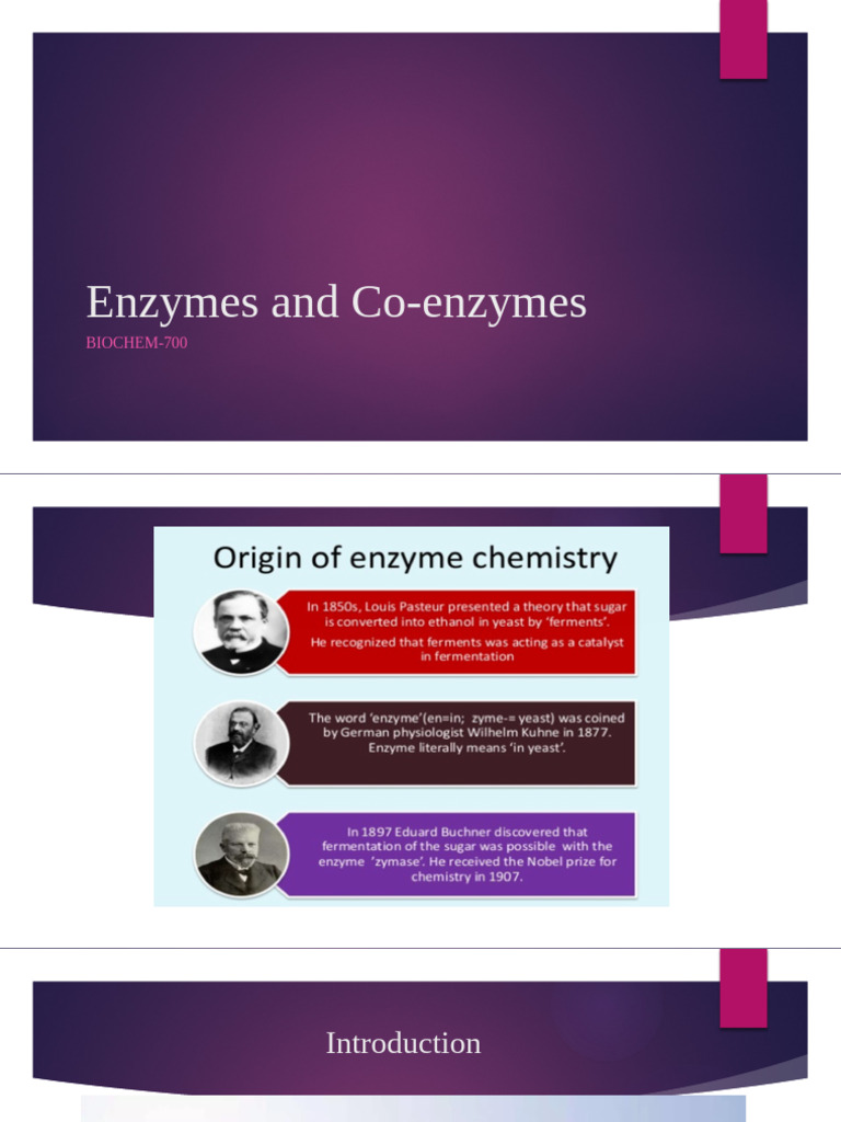SOLUTION: Introduction to enzyme and coenzyme chemistry - Studypool