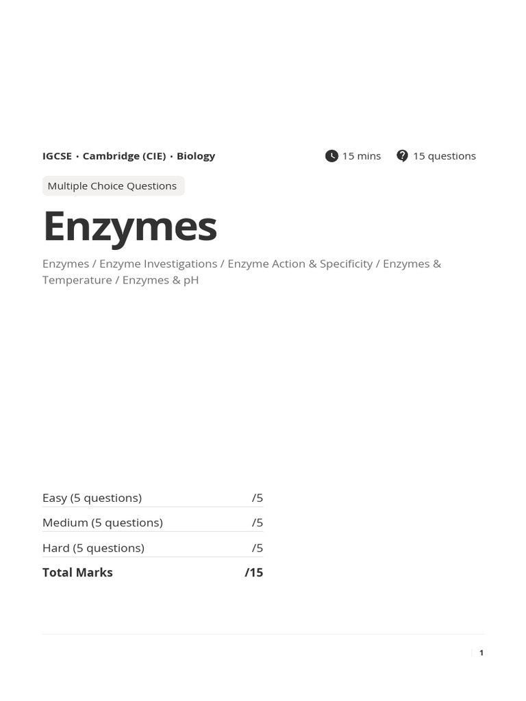 5-1-Enzymes - MC - 241209 - 184800 | PDF | Enzyme | Chemical Reactions