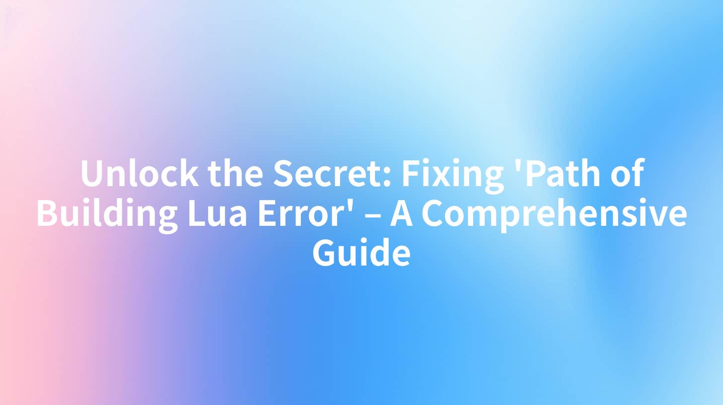 Unlock the Secrets: Fixing 'Path of Building Lua Error' in Simple Steps!