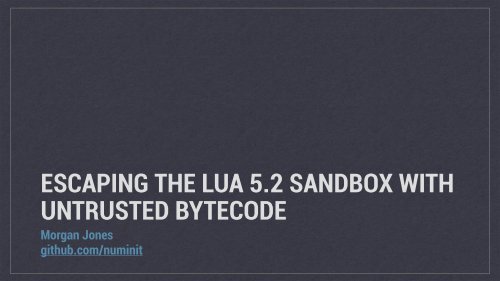 ESCAPING THE LUA 5.2 SANDBOX WITH UNTRUSTED BYTECODE