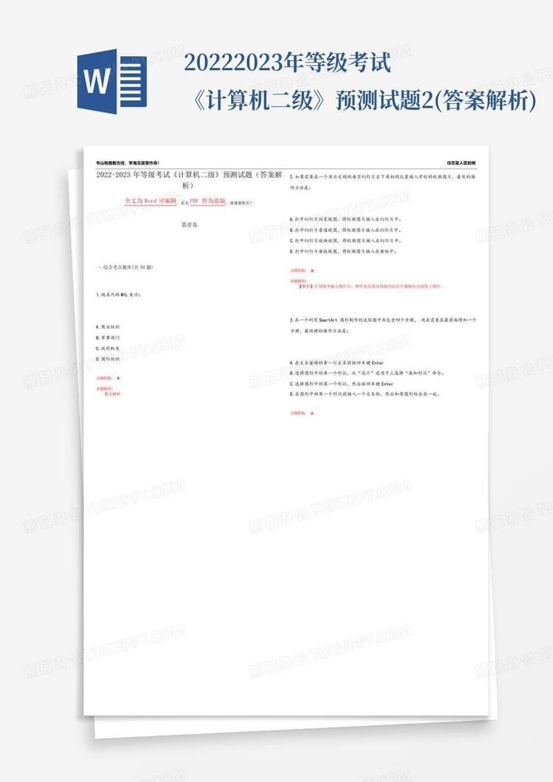 2022-2023年等级考试《计算机二级》预测试题2(答案解析)Word模板下载_编号lvgpdxdy_熊猫办公
