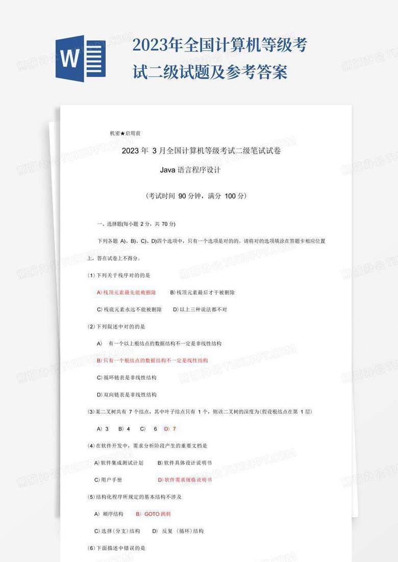 2023年全国计算机等级考试二级试题及参考答案Word模板下载_编号lbrnrkmy_熊猫办公