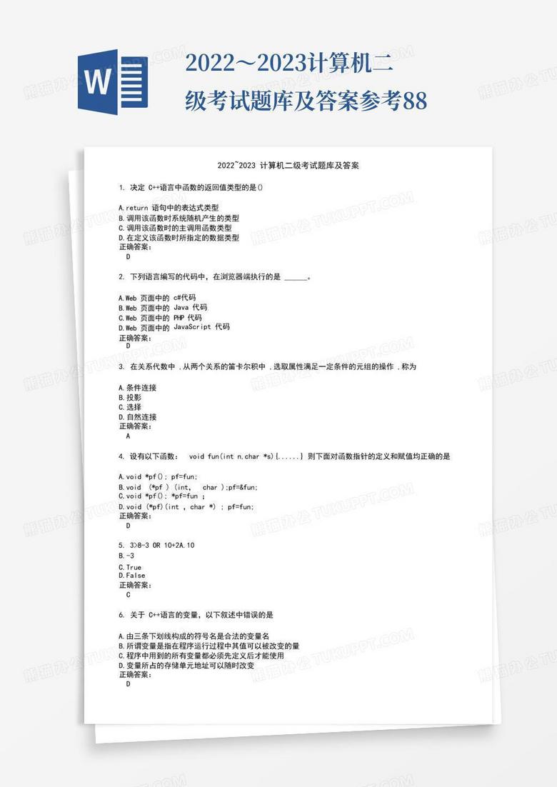 2022~2023计算机二级考试题库及答案参考88Word模板下载_编号qzkkorek_熊猫办公