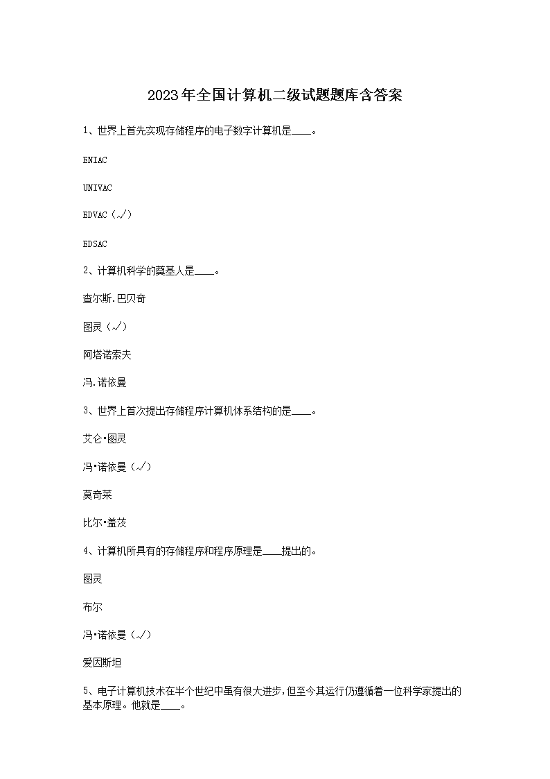 2023年全国计算机二级考试试题题库附答案-20230120.docx - 人人文库