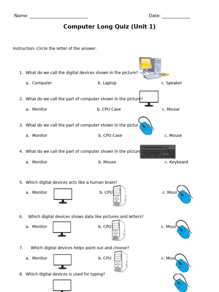 Grade 5 Computer Test 1 | PDF - Worksheets Library