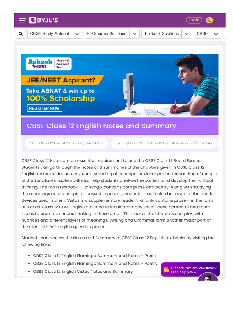 Class 12 English Notes for Note Making Format (PDF) - Study Material ...
