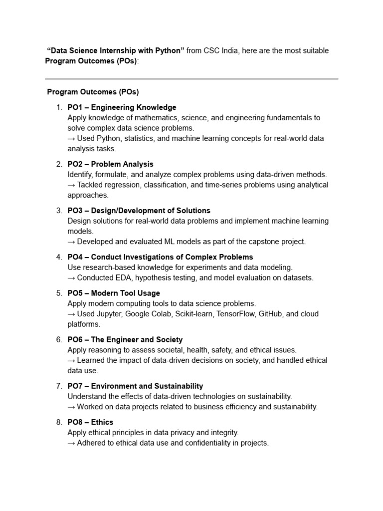 PO'S for DATA SCIENCE internship from CSC | PDF | Data Science ...