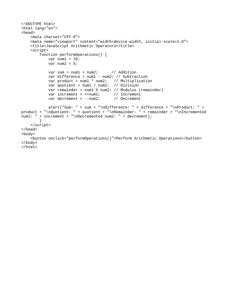 JavaScript Arithmetic Operators Guide | PDF