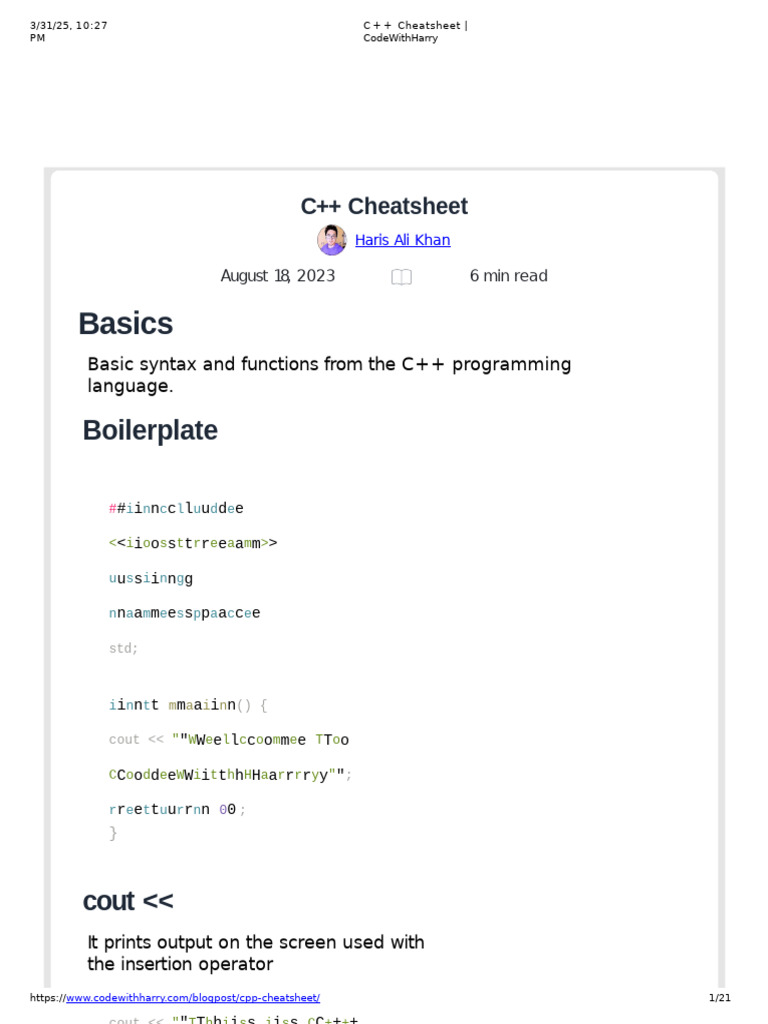 C++ Cheatsheet - CodeWithHarry | PDF | Computer Science | Software ...