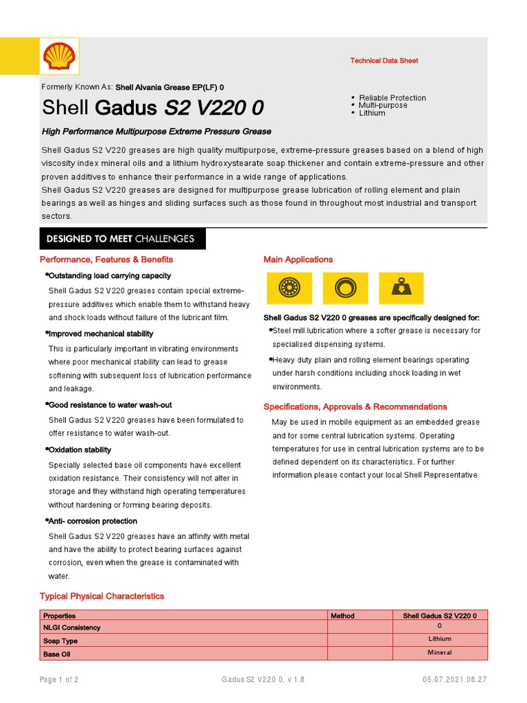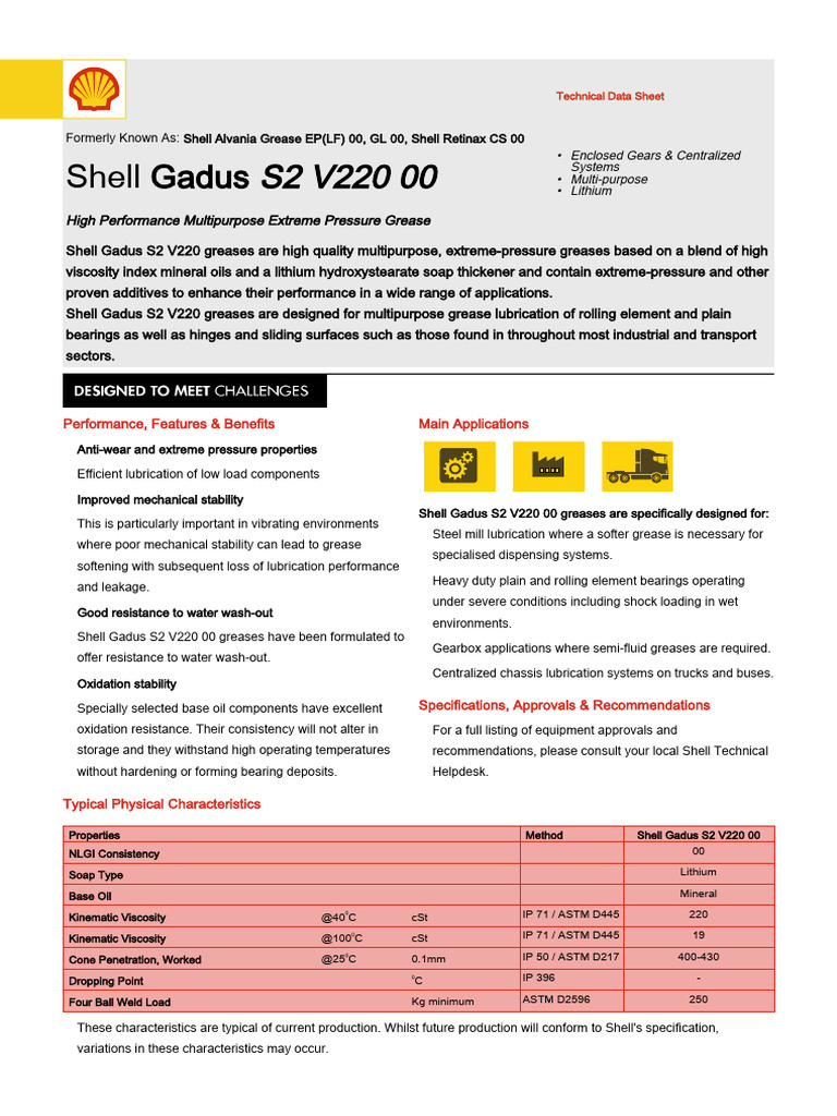 Shell Gadus S2 V220 0 Technical Data Sheet | PDF | Lubricant | Bearing ...