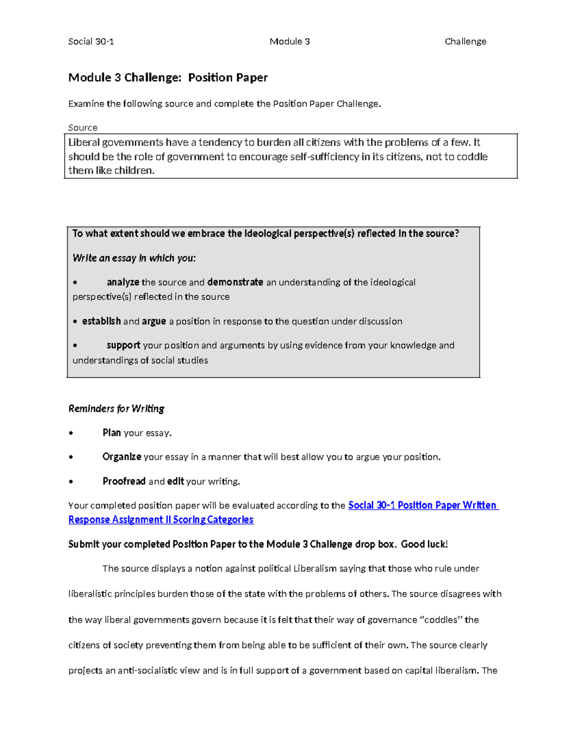 Social Module 3 Challenge: Position Paper on Liberalism Perspectives ...