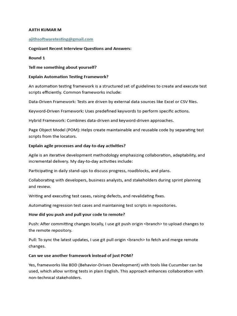 Cognizant Interview Questions Overview | PDF | Method (Computer ...