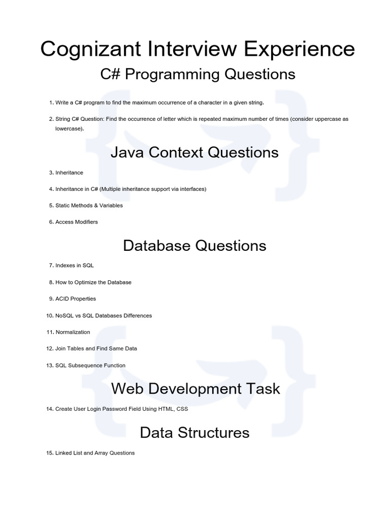 Coding Round Cognizant Technical Interview Questions | PDF | Computing ...