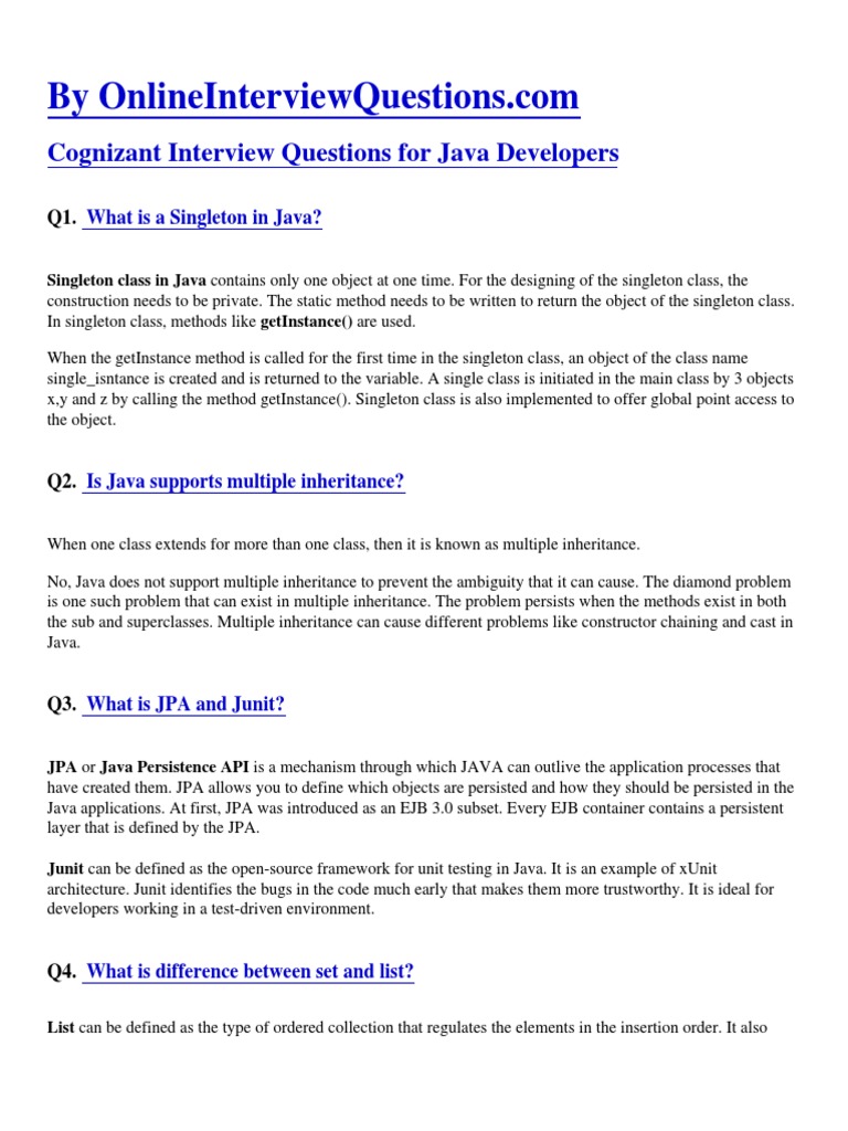 Cognizant Java Interview Questions | PDF | Class (Computer Programming ...