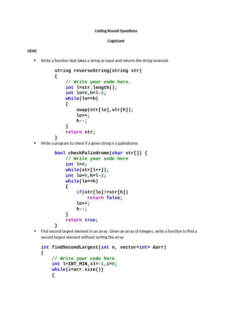 Based on this image's title: “Cognizant Coding Interview Questions | PDF | Computing | Applied ...”