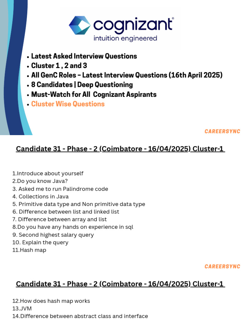 16 April 2025 - Cognizant Interview Questions All Cluster | PDF | Sql ...
