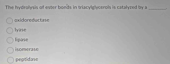 Solved: The hydrolysis of ester bonds in triacylglycerols is catalyzed ...