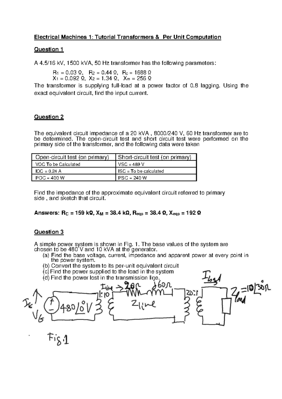 Electrical Machines 1: Final Tutorial on Transformers & Per Unit ...