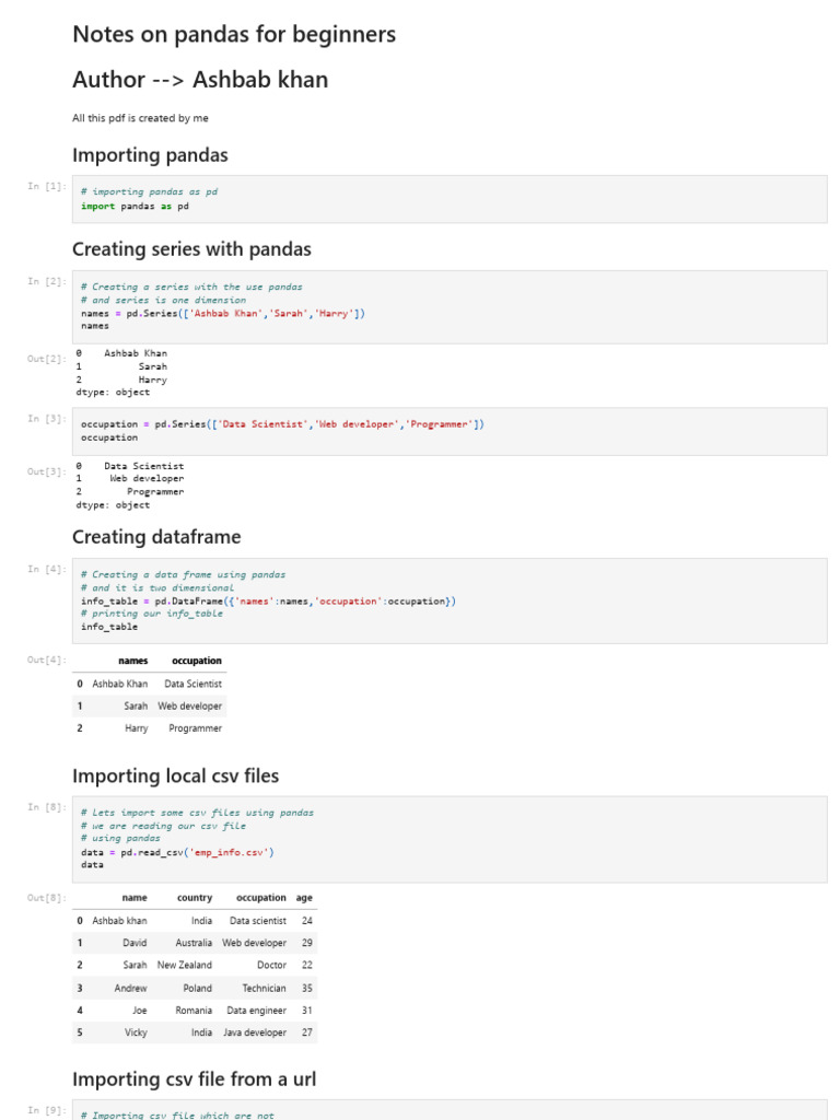 Pandas Library Notes For Beginners | PDF