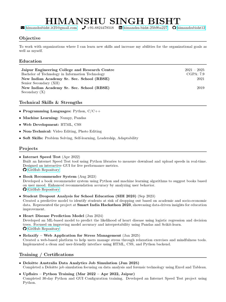 Himanshubisht Resume Final 1 | PDF | Machine Learning | Python ...