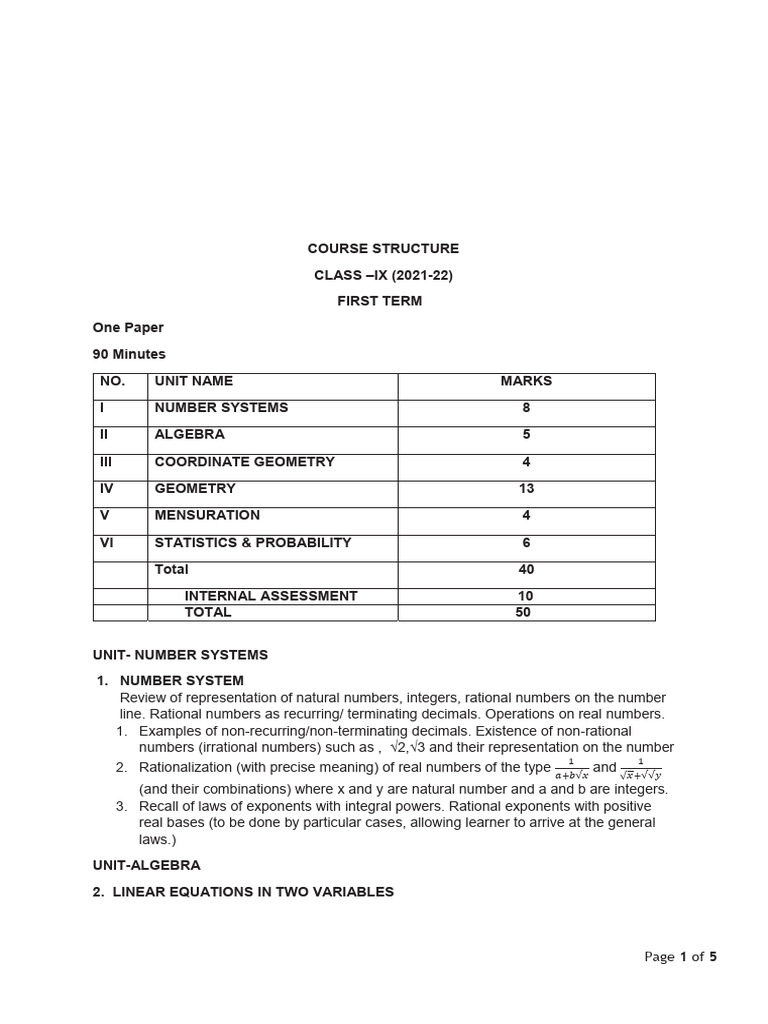 Class IX Math Course Structure 2021-22 | PDF | Triangle | Circle