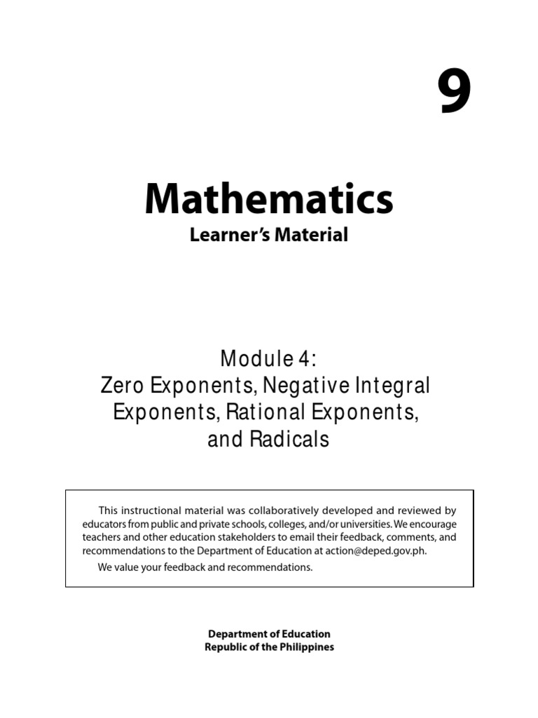 9 Math LM - U2 m4 v1 0 | PDF | Exponentiation | Integer