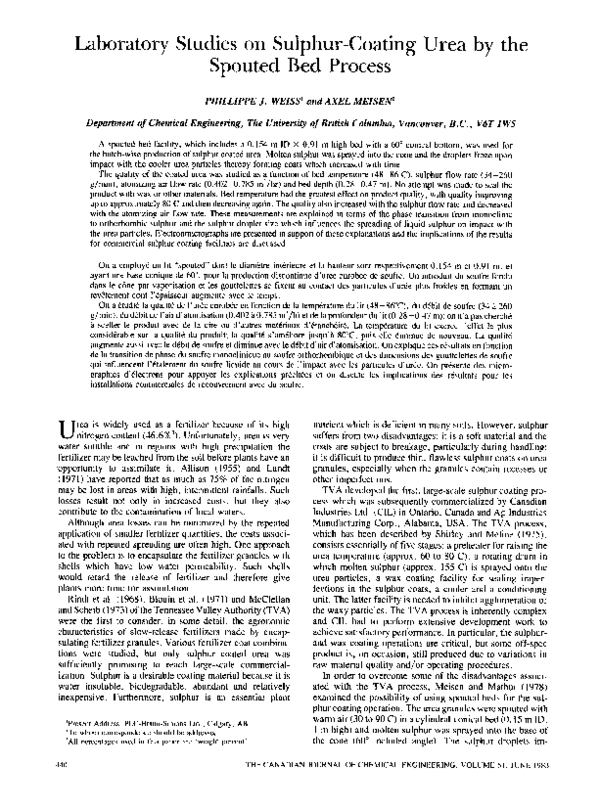 (PDF) Laboratory studies on sulphur-coating urea by the spouted bed process