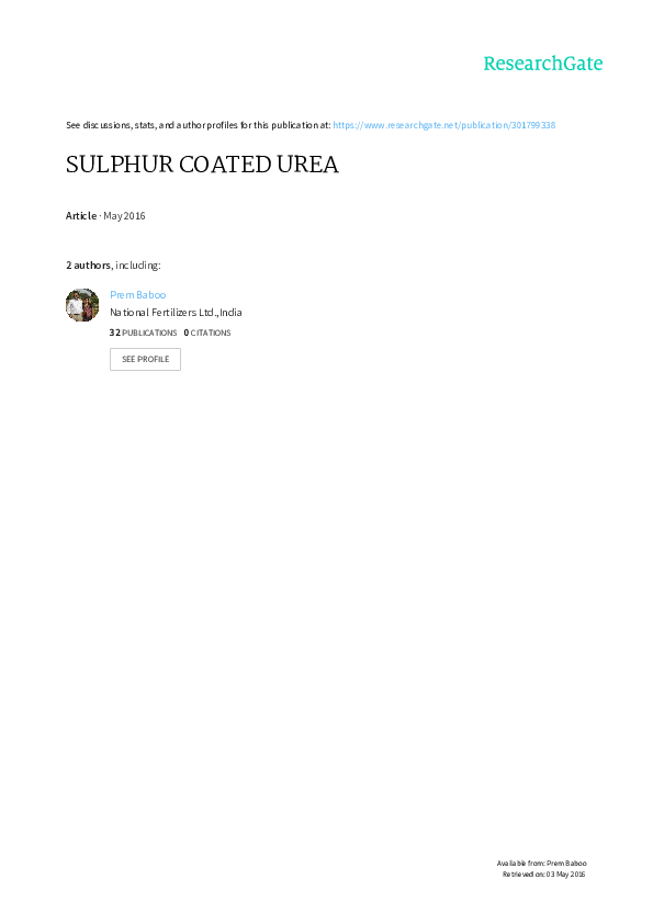 (PDF) Urea Gold: Unveiling the Benefits of Sulphur-coated Urea Fertilizer