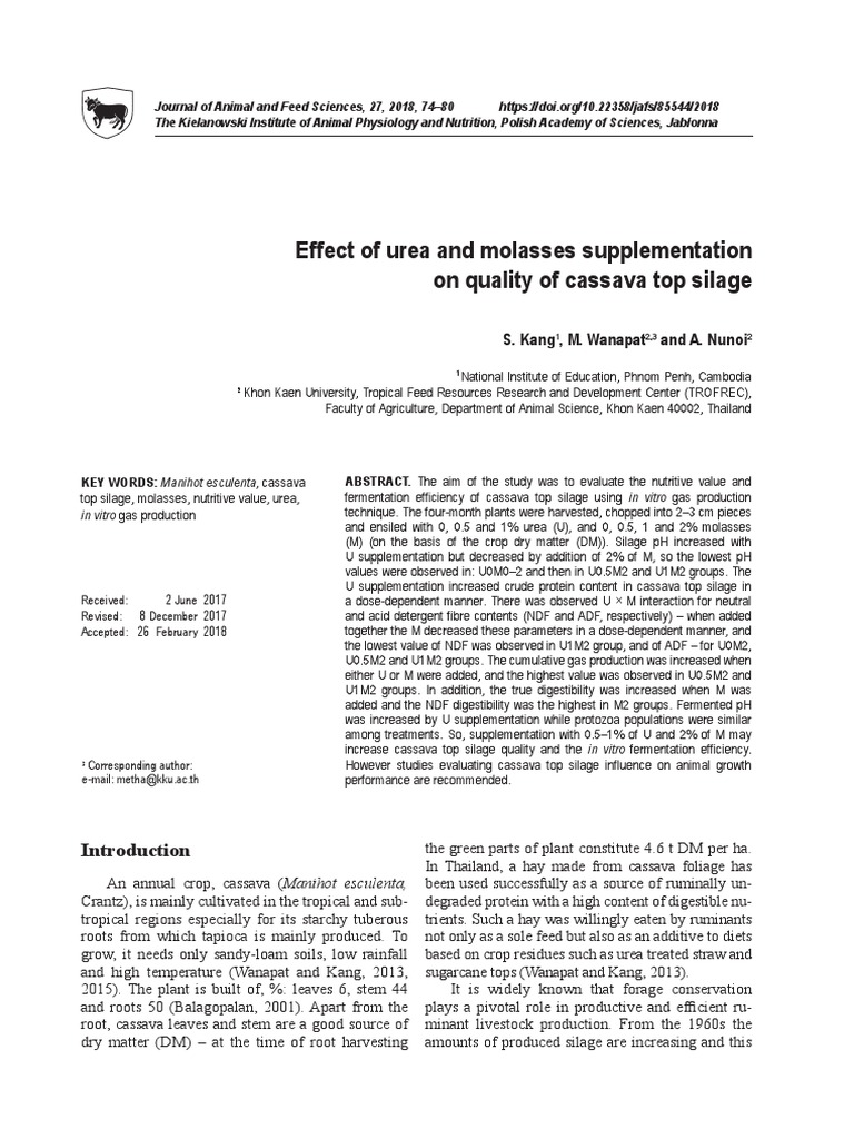 Table 1 from Effects of urea and sulfur on performance of faunate and ...