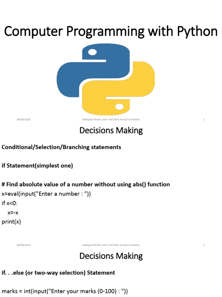 L5 Slides - Intro To Python Programming - Y8 | PDF | Control Flow ...