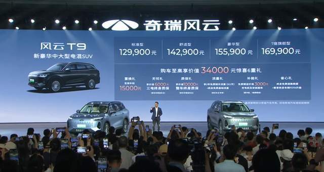 Based on this image's title: “这次听劝了!奇瑞风云T9L上市售12.99万元起,提供1.5T插混+四驱”